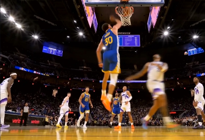 全场笑疯了!库里空切 暴力腾飞完成勉扣!