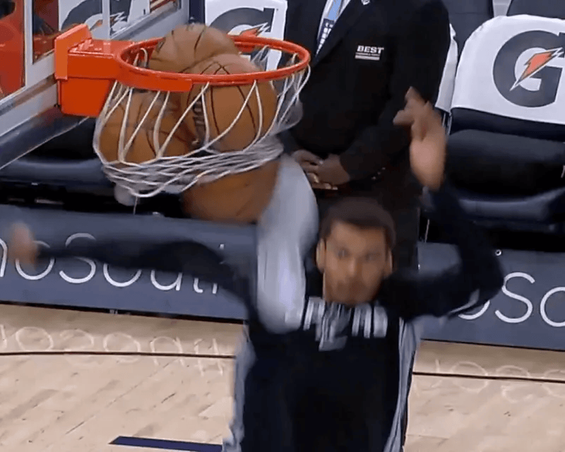 本场比赛前的热身经过中,马刺球员维克托-文班亚马在热身时,在篮下起跳径直用脚踢掉篮网中的篮球。