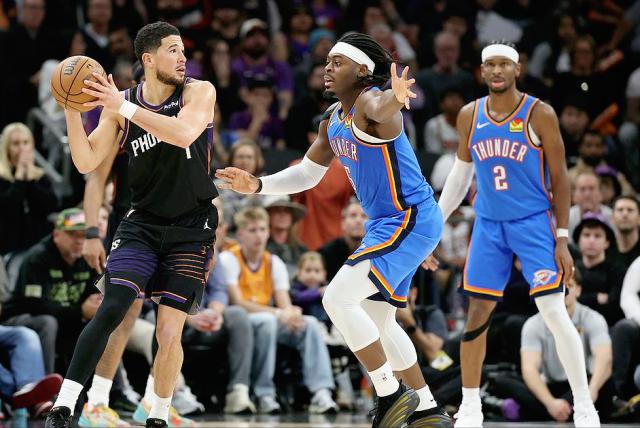 这里我们需要明确一个想法,防只会投篮的东说念主和防投突聚合的东说念主,皆备是两码事。防纯投手,你不错斗胆上招架、伸手烦闷;但要是对方又能投又能突,你站位就必须收缩一些,留出距离防患他冲破,这样就给了对方好的投射空间。最近打败雷霆的太阳和黄蜂,便是收拢了这小数。他们莫得像马刺、丛林狼那样的内线上风,但队里多东说念主都有投突聚合的要挟,并且外线球员的身体体型比雷霆更有上风,一朝找到投篮手感,雷霆就澈底找不着北了。