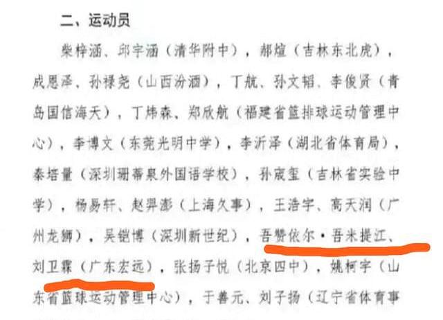 名单里,广东宏远青训出品的吾赞依尔・吾米提江和刘卫霖显著在列。