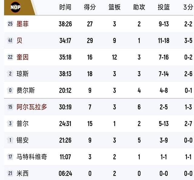 申京、小贾各中一球,墨菲跟上补篮,贝又一个长两分,鹈鹕把比分翻当年。