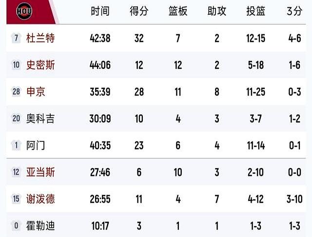 更扎心的是,上一场对掘金的误判余波还在,裁判陈述说终末两次皆不利火箭,申京皆拿了33分10篮板10助攻2抢断,杜兰特那场亦然25分5篮板7助攻还送了5个大帽,偏巧要道时刻时刻还够,他来个强投三分,球迷心里直陈思:这到底啥路数。